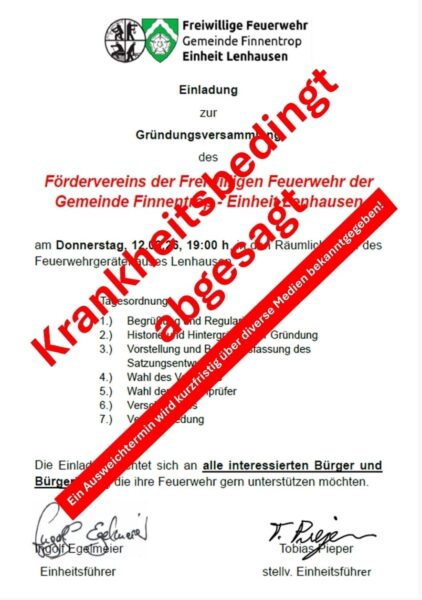 Leider müssen wir unsere Gründungsversammlung kurzfristig absagen