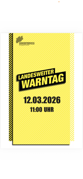 Am 12. März 2026 findet in Nordrhein-Westfalen der landesweite Warntag statt. Um 11 Uhr werden in ganz NRW Sirenen, Warn-Apps und andere Alarmsysteme getestet. Bürgerinnen und Bürger sind aufgerufen, sich mit dem Thema Warnung und Verhalten im Ernstfall vertraut zu machen. Der Warntag dient der Sicherheit aller und soll helfen, im Falle einer Katastrophe schneller und besser informiert zu sein.