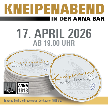Kneipenabend am 17.04.2026 ab 19.00 Uhr in der Anna-Bar.