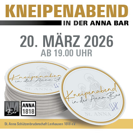 Kneipenabend am 20.03.2026 ab 19.00 Uhr in der Anna-Bar.