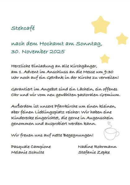 Stehcafé nach dem Hochamt am 1. Advent